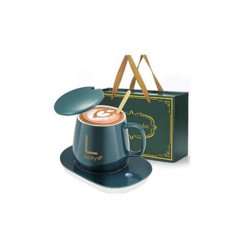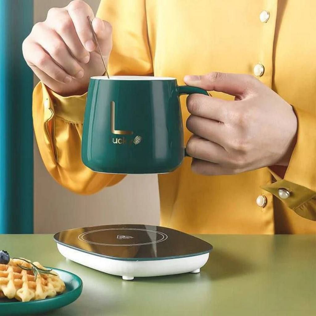 Elegante Set Calentador Eléctrico con Taza y Cuchara en color verde es una solución sofisticada diseñada para mantener tus bebidas a la temperatura ideal de 45°C de forma constante e inteligente. Este kit premium incluye una taza de cerámica de alta calidad, una cuchara de acero inoxidable y una base de vidrio templado con tecnología de sensor de peso, la cual activa el calentamiento automáticamente al colocar la taza y se apaga al retirarla. A diferencia de los modelos USB, este calentador cuenta con un conector de 110V, lo que le otorga una mayor potencia térmica y eficiencia. Su diseño minimalista con patas antideslizantes y superficie de calentamiento uniforme lo hace compatible con otros termos o tazas, convirtiéndolo en el accesorio perfecto para cualquier escritorio o mesa de noche.